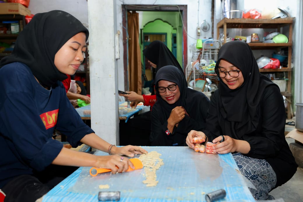 “Sudah ikut saya tiga tahun. Alhamdulillah bisa mengerjakan mencetak kue. Tapi tidak saya haruskan ikut kerja terus seperti yang lainnya. Sesuai kemampuannya saja, yang penting bisa belajar mandiri,” ungkap Jamilah.