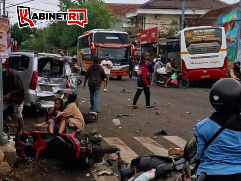 KEDIRI, Kabinetri.id– Kecelakaan lalu lintas kembali mengguncang ruas jalan protokol Kota Kediri. Sebuah bus antar kota Harapan Jaya diduga menerobos lampu merah dan memicu tabrakan beruntun di Simpang Empat Muning, Kecamatan Mojoroto, Jumat (23/1/2026) sekitar pukul 17.46 WIB. Insiden ini terjadi saat arus lalu lintas padat di jam pulang kerja, sehingga sempat menimbulkan kemacetan panjang.