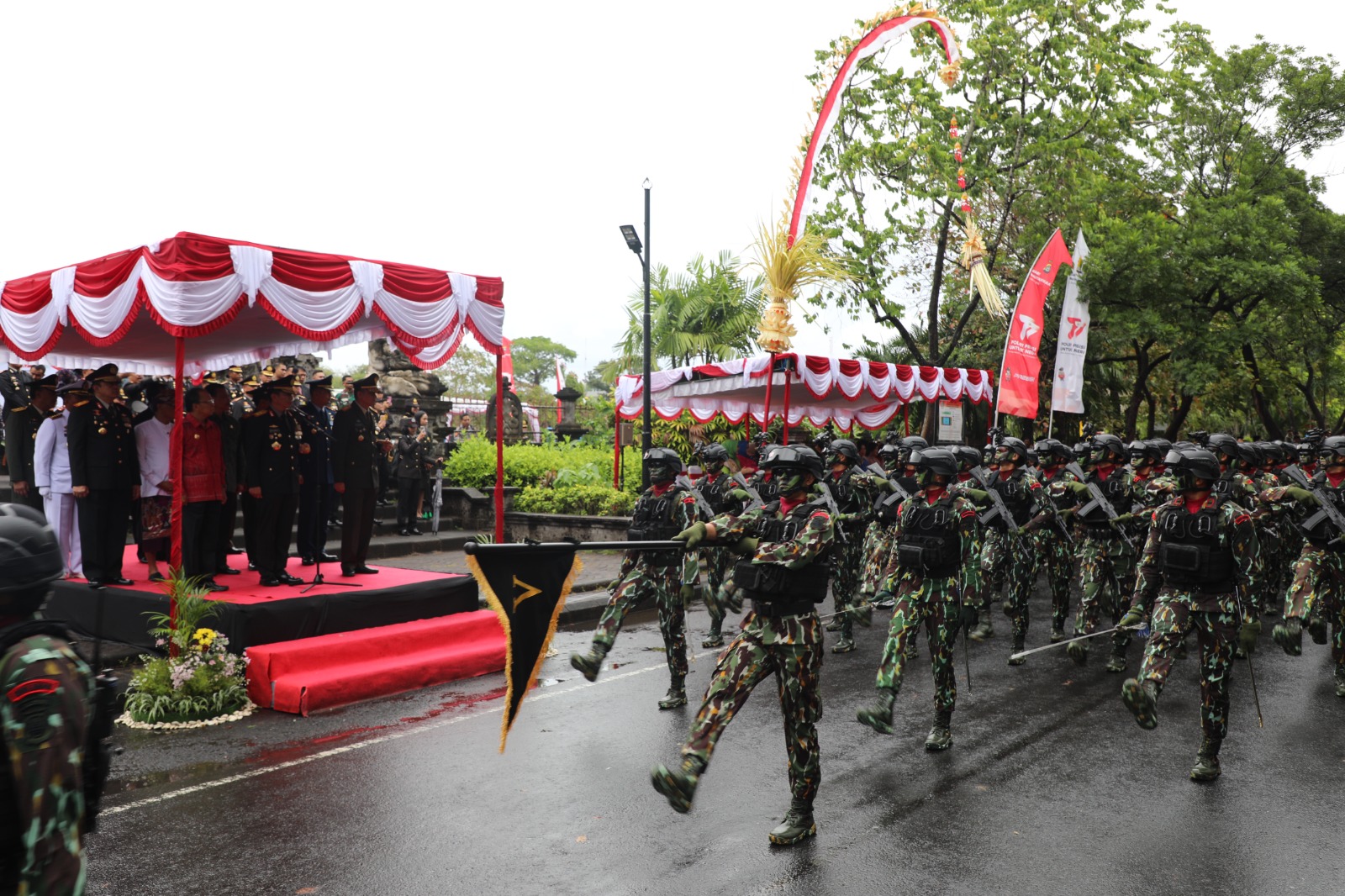 Kabid Humas Polda Bali, Kombes. Pol. Stefanus Satake Bayu Setianto, S.I.K., M.Si. mengatakan seluruh peserta defile menampilkan kemampuan baris berbaris yang rapi disaksikan langsung Kepala Kepolisian Daerah Bali Irjen. Pol. Drs. Putu Jayan Danu Putra, S.H., M.Si., bersama Gubernur Bali, Ketua DPRD Provinsi Bali, Pangdam IX/Udayana dan undangan lainnya.