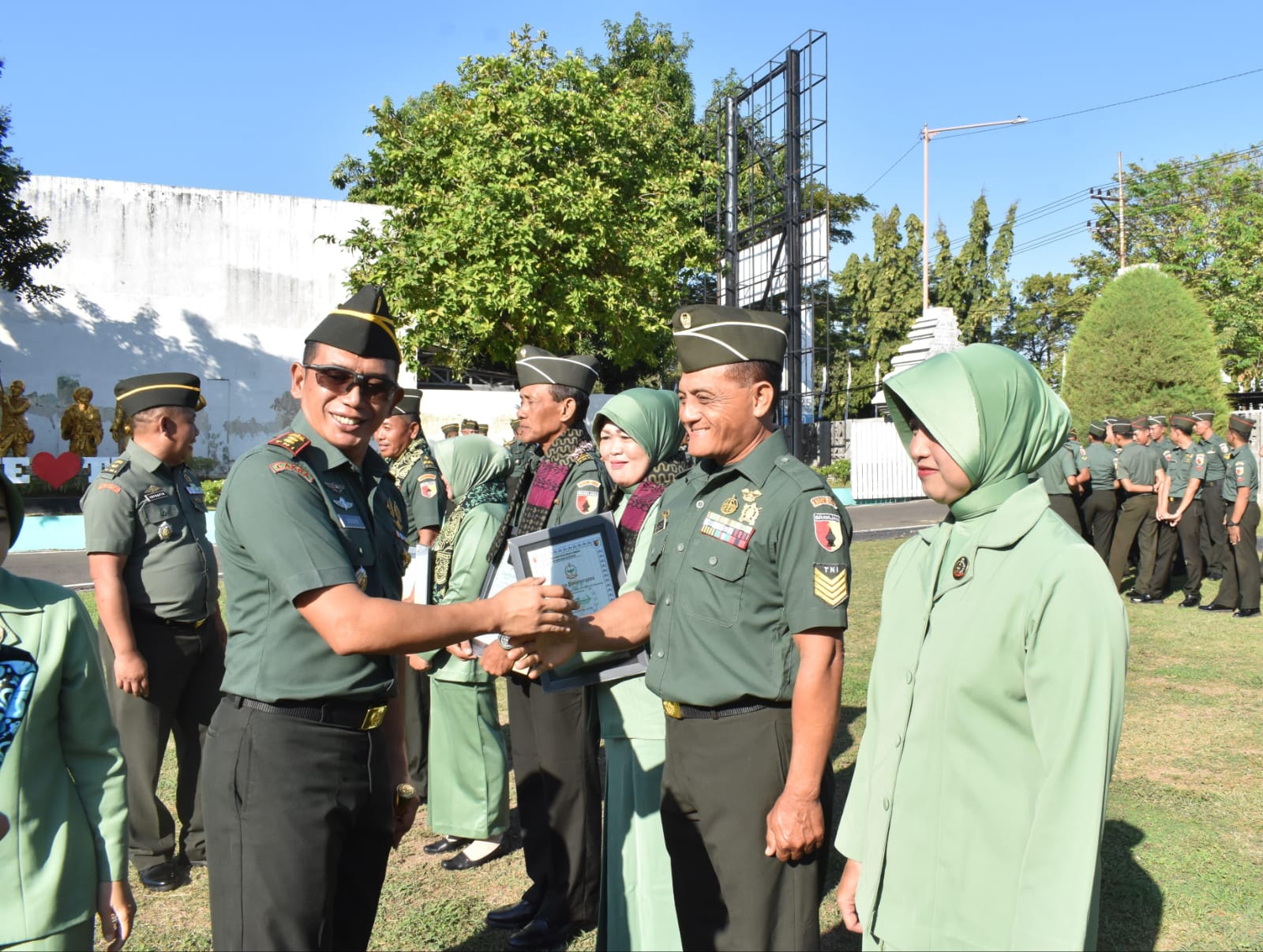 Pada kesempatan tersebut, Komandan Kodim 0825/Banyuwangi Letkol Arh Joko Sukoyo, S.Sos. M. Han., menyerahkan piagam penghargaan dan kenang-kenangan kepada ketiga anggota yang memasuki Masa Persiapan Pensiun.