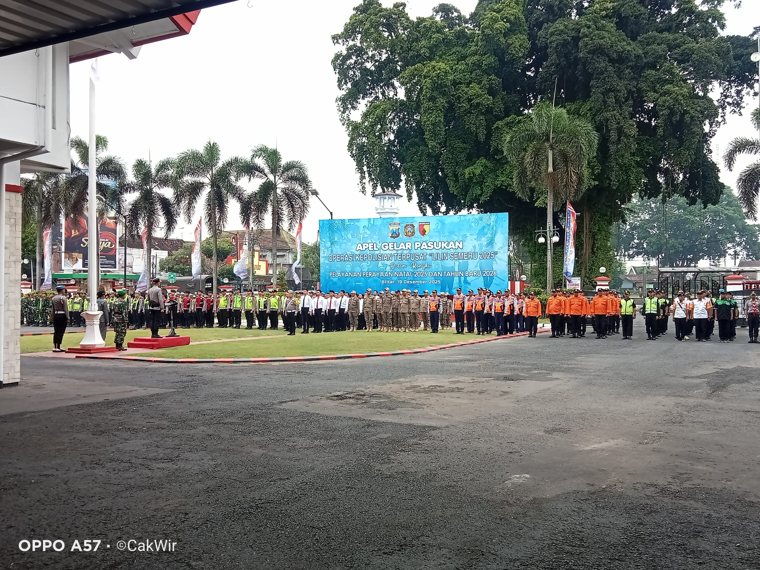 Apel Operasi Lilin Semeru 2025 dipimpin langsung oleh Kapolres Blitar Kota, AKBP Titus Yudho Uly, S.I.K., M.Si. Kegiatan ini dihadiri oleh personel TNI, Satpol PP, Dinas Perhubungan, BPBD, Pramuka, serta instansi terkait lainnya.